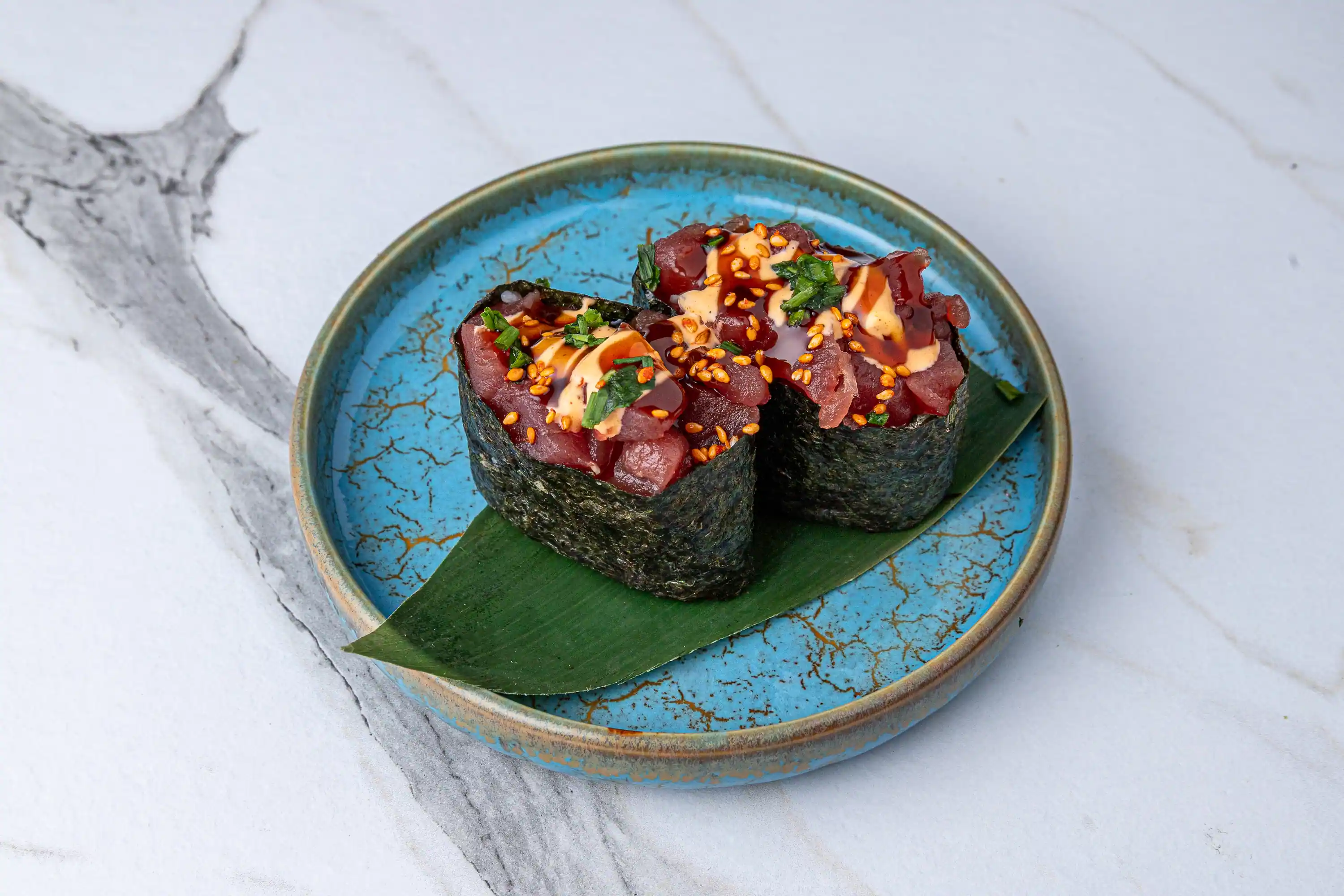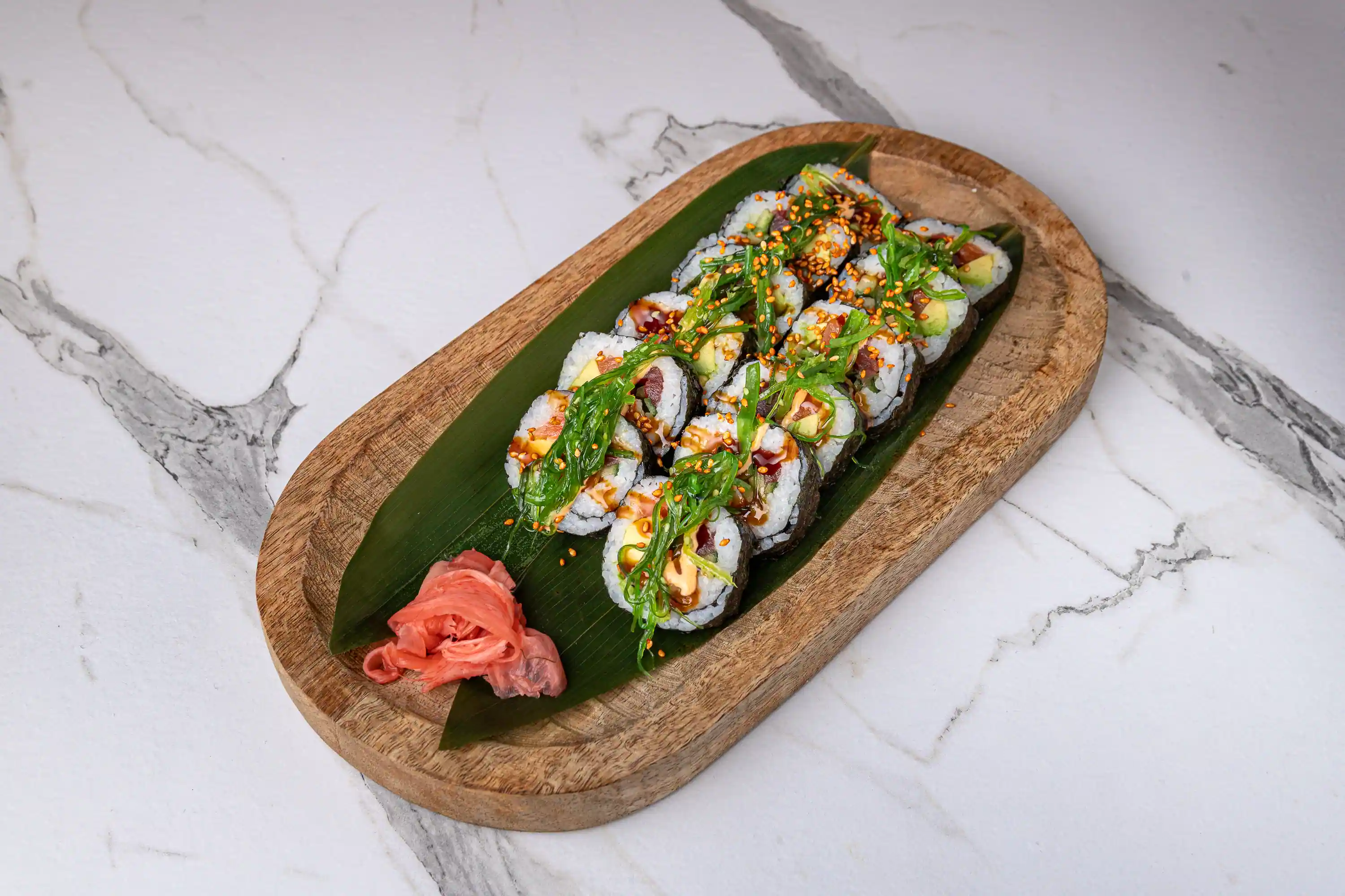 Uramaki tartar atún flambeado